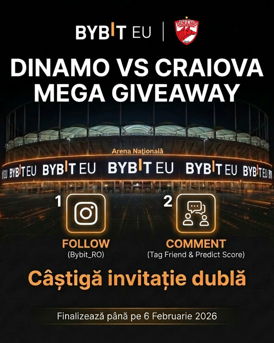 Tot Bybit EU oferă 300+ invitații duble la Dinamo vs U Craiova, de pe 9 februarie. Găsești tot ce trebuie făcut în postarea asta, de pe insta. Sunt deja 400+ oameni înscriși și deadline-ul e vineri, 6 februarie.